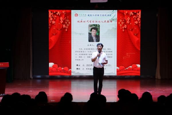 2023年9月20日下午,公司举办了2023级新生入学教育系列首场讲座——做新时代有情怀的人民教师。公司班子成员、系部主任、教授和青年博士代表及2023级全体新生参加了此次活动,会议由公司党总支副书记李承主持。