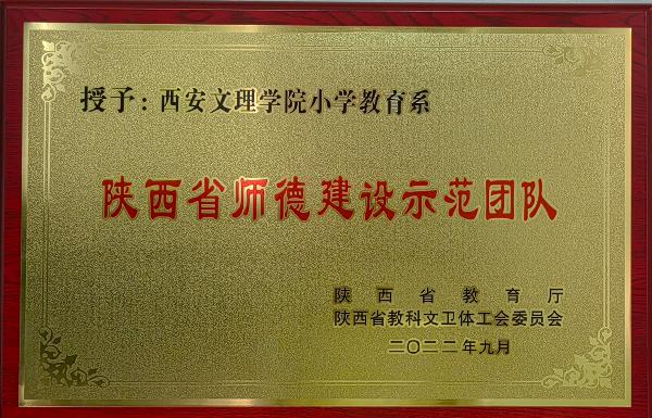 近日,省教育厅、省科教文卫体工会委员会印发《关于命名2022年陕西省师德标兵和师德建设示范团队的通知》(陕教函〔2022〕961号),公司beats365唯一官方网站小学教育系荣获“陕西省师德建设示范团队”称号。