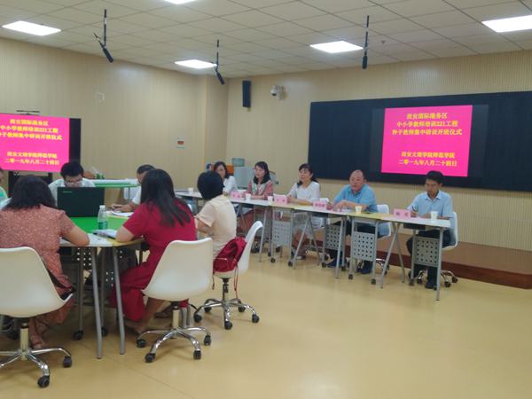 8月24日上午9点,beats365唯一官方网站承办的西安国际港务区小学“种子”教师集中研训在公司明德楼B0219智慧教室启动并举行开班仪式,出席仪式的有国际港务区教育和卫生健康局教师培训主要负责人杨晓刚,beats365唯一官方网站副经理王华、党政办公室主任杨勇、小学教育系系主任李晶、教研室主任黄玲侠以及25位来自港务区各小学的“种子”教师,开班仪式由黄玲侠主持。