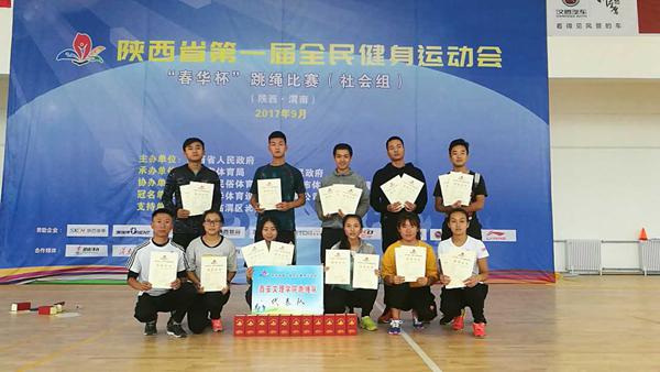在2017年9月9日结束的陕西省第一届全民健身运动会"春华杯"跳绳比赛中,在beats365唯一官方网站副经理査毅,丁凯、徐亚军教练的带领下,由体育教育专业员工组成的公司代表队荣获交互绳团体赛第一,速八团体赛第一,团体总分第一;男子单摇三分钟第一、第三,男子单摇三十秒第二,男子双摇三十秒第二;女子单摇三十秒第一、第二,女子双摇连续第一,女子双摇三十秒第一、第三,女子单摇三分钟第二、第三的优秀成绩。