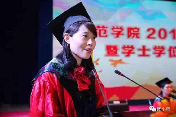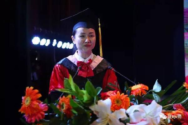 教师代表李晶以“时光不老,我们不散”为主题为毕业生们送上祝福,她希望毕业生们怀揣梦想,秉承良知与责任,不随波逐流,不羡慕盲从。知难而进,勇往直前,在更广阔的天地里活出自我、活出尊严、活出价值。