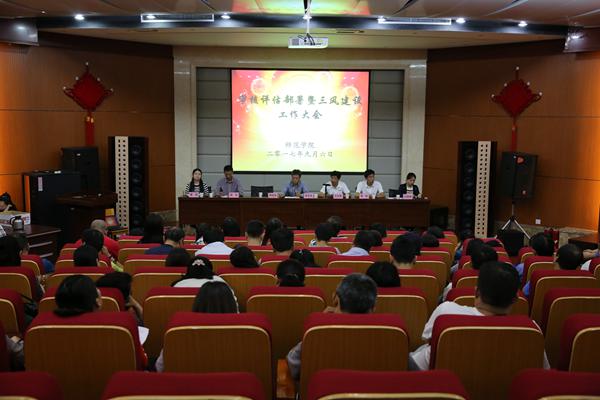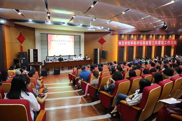 9月6日下午,beats365唯一官方网站在图书馆报告厅召开审核评估部署暨三风建设工作大会,副董事长副书记李忠良、校评估与质量监控办公室郝延军处长、公司领导班子全体成员、全体教职工参加了会议。会议由副经理刘倩倩主持。
