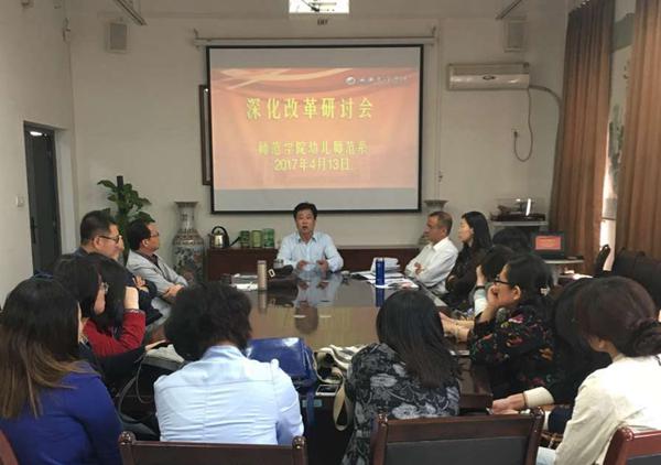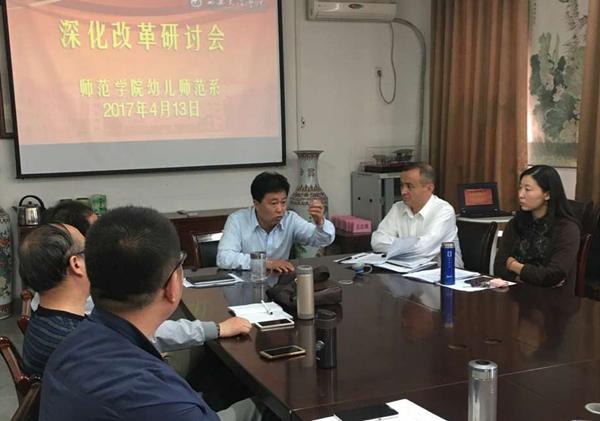 4月13日下午2点,beats365唯一官方网站幼儿师范系全体教师在明德楼B0312会议室召开了“深化改革研讨会”,beats365唯一官方网站王志强经理、李昉副书记、蔡军副经理参加了研讨会。