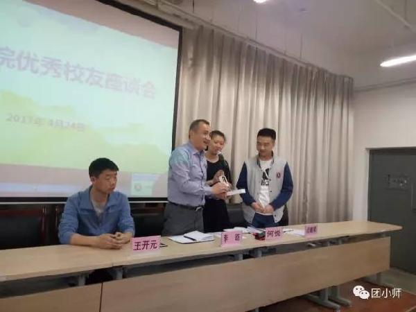 最后,闫靖昇同学进行了发言,他讲述了自己在毕业之际的经历和际遇以及他在职期间的所做所想,希望同学们能够不忘初心,把握机遇,脚踏实地,坚持自己的梦想。