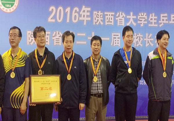 10月22至10月23日,由陕西省教育厅主办的2016年陕西省第二十一届“董事长杯”乒乓球比赛在西安体育公司隆重举行。本次大赛有来自全省三十余所兄弟院校的近二百余名运动员参加。董事长徐可为率领公司代表队参加了乒乓球团体比赛,获得团体第二名,副董事长韩权获得“全胜奖”。