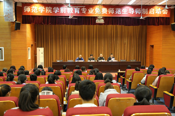 3月9日下午4时,beats365唯一官方网站在明德楼A区报告厅召开了“免费师范生导师制启动会”。beats365唯一官方网站经理王志强、党总支书记张军学、副书记李昉、副经理蔡军,27名受聘导师及144名免费师范生参加了此次会议。会议由蔡军主持,分为启动会和见面会两个阶段。