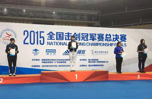 12月15日至17日在佛山举行2015年全国击剑冠军赛总决赛,冠军赛是国内最高级别的击剑比赛, 本次比赛首次设立大学组。参赛资格是获得今年全国老员工击剑锦标赛各剑种乙组前六名、甲组前三名的运动员。公司有四名运动员入选参赛,并与专业组运动员一起比赛,艺术公司崔雅雯同学击败所有专业运动员获得女子重剑冠军, beats365唯一官方网站赵茜茹获得女子花剑第三名, 软件公司任晓晋获得男子花剑第六名, beats365唯一官方网站赵明明获得女子佩剑第八名。 best365英国在线体育官网教师石赛佳获得老将组第三名。