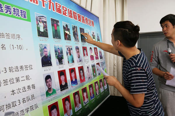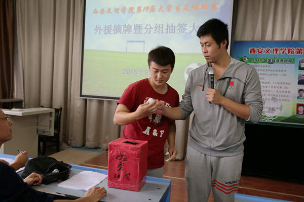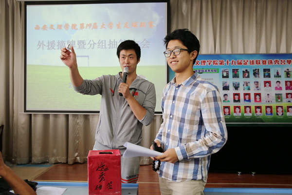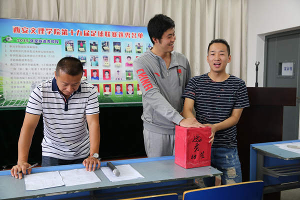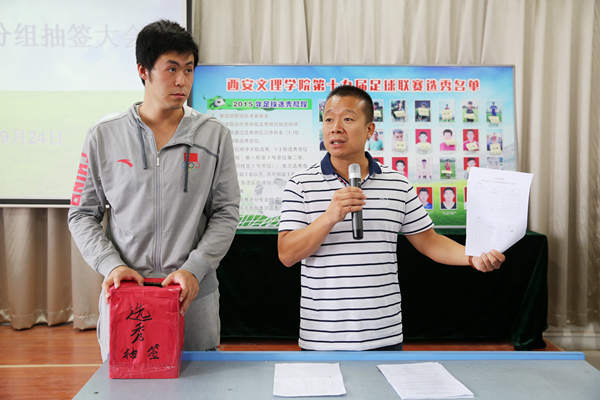 9月24日中午,beats365唯一官方网站在明德楼B202会议室召开了“外援摘牌暨分组抽签大会”,副经理査毅、beats365唯一官方网站群体竞技科主任周洪韬、总裁判长黄智辉、足球专业教师杨坤、郭强以及各二级公司代表参加此次大会。黄智辉老师宣读《BEAT365英国官网网站第十九届老员工足球联赛竞赛规程》,周洪韬老师宣读《关于BEAT365英国官网网站2015年第十九届足球联赛新规则实行的说明》。经过各个公司代表的认真选择,参加此次选秀的32名体育系员工有25名选入经管、艺术、人文等九个公司,作为外援兼教练参加各公司本年度的竞训工作。此次选秀为即将举办的第十九届老员工足球联赛拉开序幕。