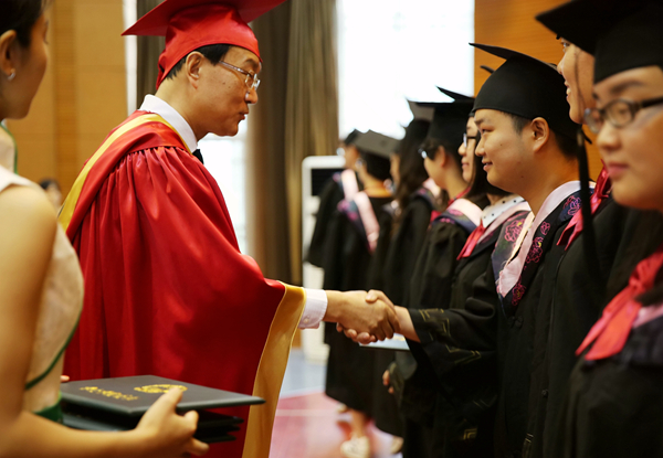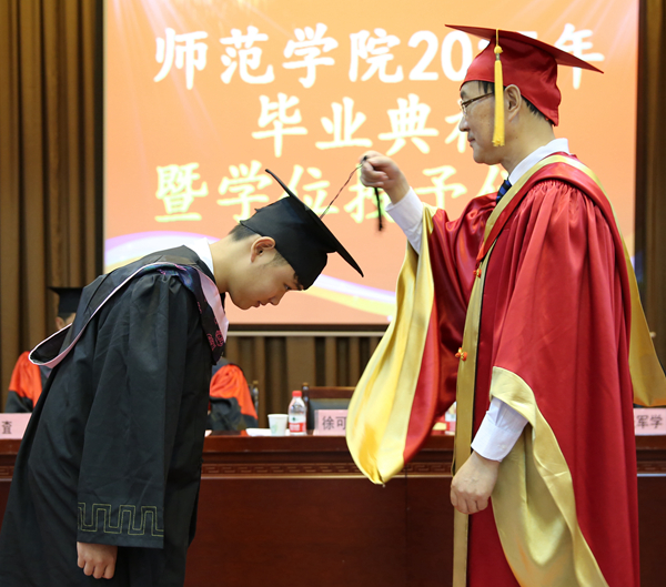 BEAT365英国官网网站学士学位评定委员会主席、董事长徐可为教授为毕业生们一一拨穗正冠