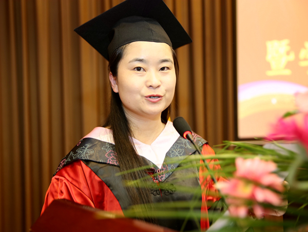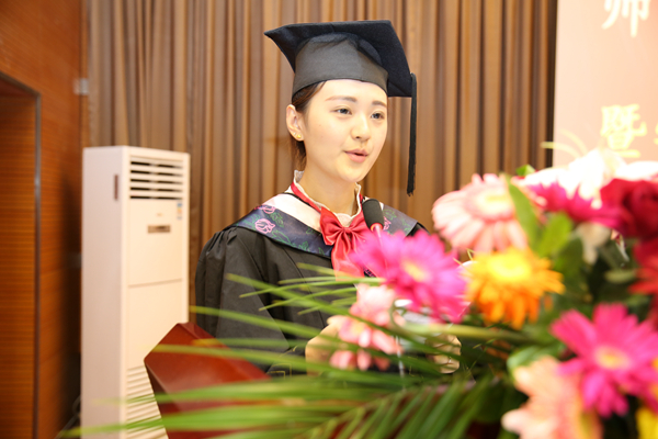学前教育专业的阳春白雪代表毕业生发言,她表达对母校的感激之情,对老师付出的感谢,对同窗情谊的不舍。教师代表李晶老师在讲话中提到同学们从入校的青涩,到初上讲台的紧张与忐忑,再到实习后的从容镇定,看着员工们的点滴蜕变与成长,李晶老师由衷地希望他们走出公司后努力工作,锐意进取。