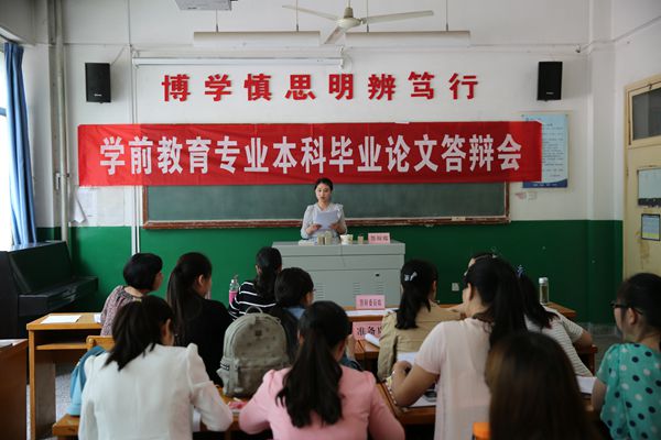 2015届学前教育本科毕业生从2014年11月开题至2015年5月20日,为期约六个月的论文开题、撰写、定稿工作完成。在此期间,学前教育专业各位指导教师秉着严肃学术、认真负责的态度,对论文撰写进行了悉心指导与修改,保证了论文的质量。答辩过程中,答辩委员耐心地听取答辩者的阐述,有针对性的提出建设性建议,指明需进一步完善之处。答辩者认真回答答辩委员提出的问题,虚心接受各位老师的指导,整个过程表现出了浓厚的学术探讨气氛。答辩委员的认真负责,使答辩过程严格细致,答辩工作由下午14:30一直延续到18:20时结束。