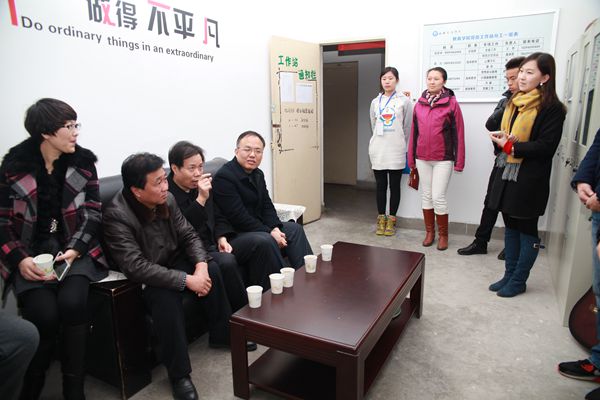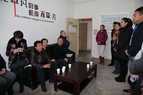 首先,由应用心理学专业杨磬羽,小学教育专业陈妍,体育教育专业李盛等六名同学对工作站的各项工作制度、内容及目标作了详细系统的讲解,在讲解过程中,韩权副董事长,王志强经理,张军学书记都对讲解内容进行点评和补充。接着,领导们对工作站指导老师及员工工作人员们提出很多建设性的意见,从学习角度,工作角度,心理角度分别进行精彩的评析和指导,并且表明了他们对工作站的殷切期望。并鼓励工作人员们,要切实开展工作站的工作活动项目,过程也许艰难,但是“把平凡的事努力坚持做下去,就是不平凡。”最后,韩权董事长和王志强经理共同完成此次揭牌仪式。