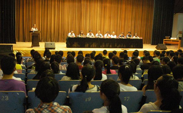9月4日在大礼堂,公司召开了迎接2014级新生大会。参加此次活动的老师有公司经理王志强教授、党总支书记张军学副教授、副经理杨泳副教授、副经理查毅副教授、体育教育教研室主任费薇娜、场馆管理中心主任张宪民、教育公司办公室主任张喜平、教育公司员工工作办公室主任邵力及辅导员老师。