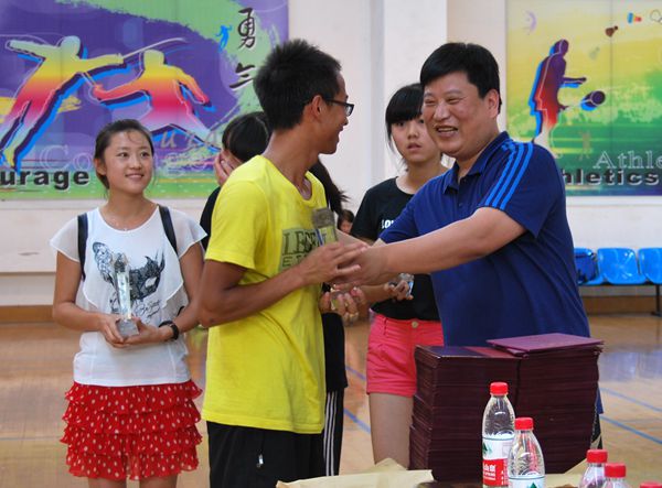 6月4日下午历时近两个月的BEAT365英国官网网站2014年度篮球联赛,在12个二级院的20个男、女篮球代表队的激烈角逐中,终于落下帷幕。下午4点半在体育馆举行了闭幕式,副董事长耿占军,韩权,教育公司经理王志强,副经理查毅 ,员工处副处长肖胜利出席了闭幕式,王志强教授致闭幕词,耿占军副董事长为冠军商公司(女)、物电公司(男);亚军物电公司(女) 文旅公司(男);季军数学与计算机公司(女)文公司(男)颁发了奖杯及证书,肖胜利副处长为获得体育道德风尚奖的文公司,化学与化工公司颁发了奖牌。闭幕式后,由教工篮球队与员工冠军联队举行了友谊赛。在一片欢乐祥和的氛围中,公司2014年度篮球联赛胜利闭幕。