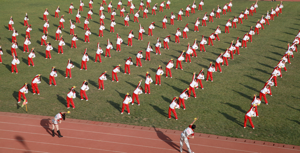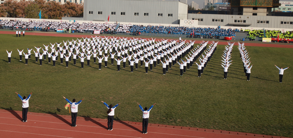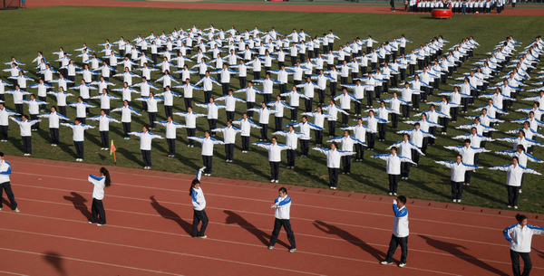 2013年11月20下午2点,公司2013级除幼师公司11个二级院共计2989人参加了公司第七届广播体操比赛,经过3个小时的激烈角逐,甲组物理与机械工程公司获得第一,数学与计算机工程公司获得第二;乙组教育公司获得第一,化学与化学工程公司获得第二;体育教育专业获得优秀表演奖;数学与计算机工程公司,外语公司,教育公司,化学与化学工程公司获得体育道德风尚奖;另有周攀峰等20名同学获得优秀领操员奖。