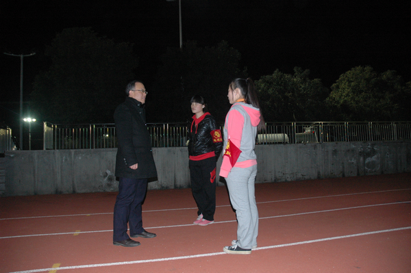 2013年12月5日星期四晚上7点钟,教育公司张军学书记,冒着严寒在勤工俭学的同学们到岗后,进行了亲切慰问。当看到操场上有两个巡逻的女孩子冒着寒风巡逻,张书记关切地说: "冬天,天冷,晚上巡逻多穿点,别感冒了。"还问到关于做勤工俭学的工作会不会影响学习,同学们回答说,不会。