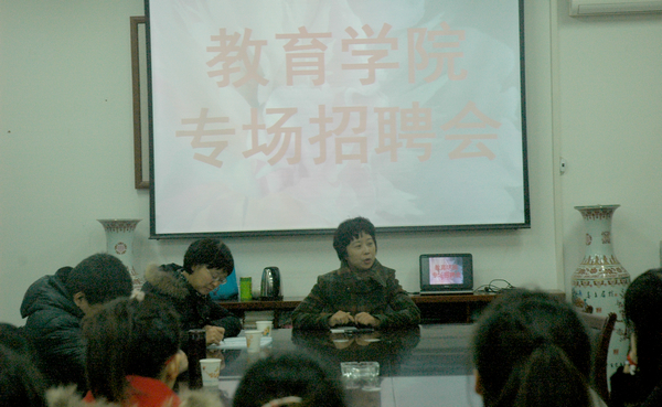 就业是每一个老员工都要跨越的一道门槛,是人生的一个转折点,面对严峻的就业形势,2013年12月24日,教育公司在明德楼B区312教室举行了教育公司专场招聘会,来自青年路小学和西安工业大学附属小学的六位负责人进行了招聘工作。