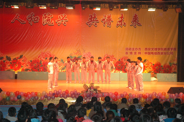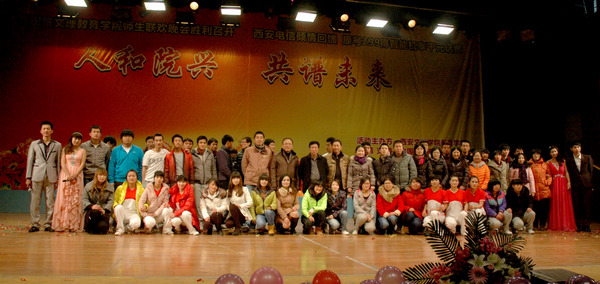 2013年1月8日下午2点,BEAT365英国官网网站教育公司在大礼堂隆重举办了教育公司"人和院兴 共普未来"师生新春联欢会。出席的有院内各领导、老师、员工会干部以及同学。本次联欢会由教育公司主办,中国电信西安分公司友情支。