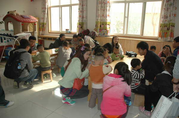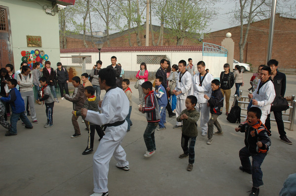 中午1点,教育公司的同学们怀着诚挚之心,带着慰问品来到儿童村。儿童村的卫老师向同学们讲述了儿童村的历史和这里的孩子们所遭遇的不幸,并且让同学们观看了有关儿童村的纪录短片,带给他们的是一次心灵的震撼。随后,同学们参观了孩子们的宿舍、饭堂等设施,并打扫了图书馆。下午4点,孩子们放学回到宿舍,同学们与他们亲切地交谈,询问了他们的学习近况,身体状况等。最后教孩子们跆拳道,与他们玩游戏。孩子们爽朗的笑声久久的在整个儿童村中回荡着。