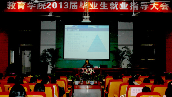11月13日下午6:50,BEAT365英国官网网站教育公司毕业生就业指导大会在明德楼A区报告厅隆重举行。BEAT365英国官网网站招就处副处长冯宁为教育公司三百余名师生做了一场关于"毕业生就业指导大会"的报告。参加本次报告会的有教育公司张书记、邵力老师、杨勇老师及员工300余人,张书记主持报告会。此次就业指导大会由教育公司主办。
