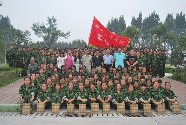 9月7日上午,教育公司经理王志强、党总支副书记张军学、杨泳副经理、查毅副经理、曹莹副经理及辅导员老师到军训基地看望了12级新生。对军训的同学们致以慰问、关心并送上精致的慰问品。