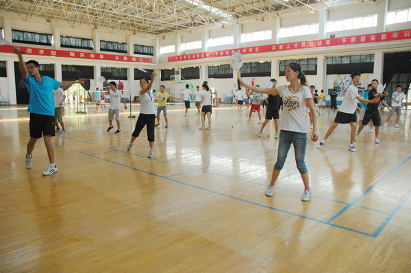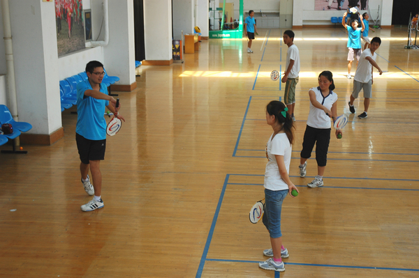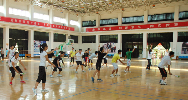 BEAT365英国官网网站教育公司与奥泊隆(北京)体育发展有限公司合作,在暑期对大一至大四体育教育专业员工进行柔力球培训,共75名同学参加。酷暑炎炎,体育馆内大家学习柔力球的热情却异常高涨,同学们都在努力、用功地学习柔力球技术,把公司柔力球项目发扬光大。