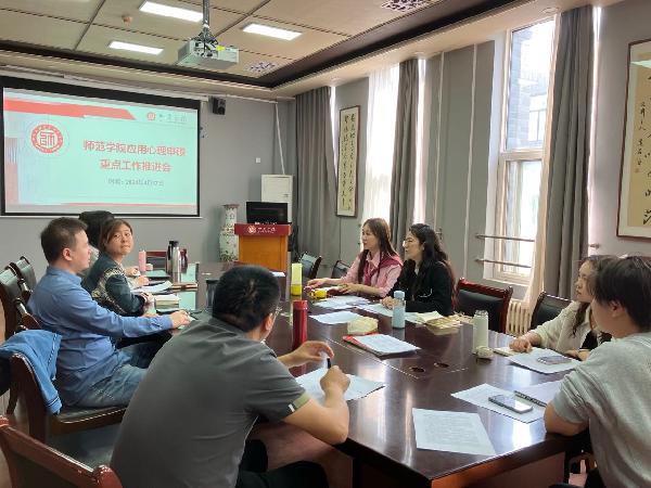 2024年4月17日下午14:30,公司召开应用心理申硕工作推进会。会议全面梳理了应用心理申硕专业学位点建设目标,落实建设责任任务,进一步明确了应用心理学团队建设工作重点。beats365唯一官方网站与学前beats365唯一官方网站的的应用心理学专业团队教师出席了本次推进会。