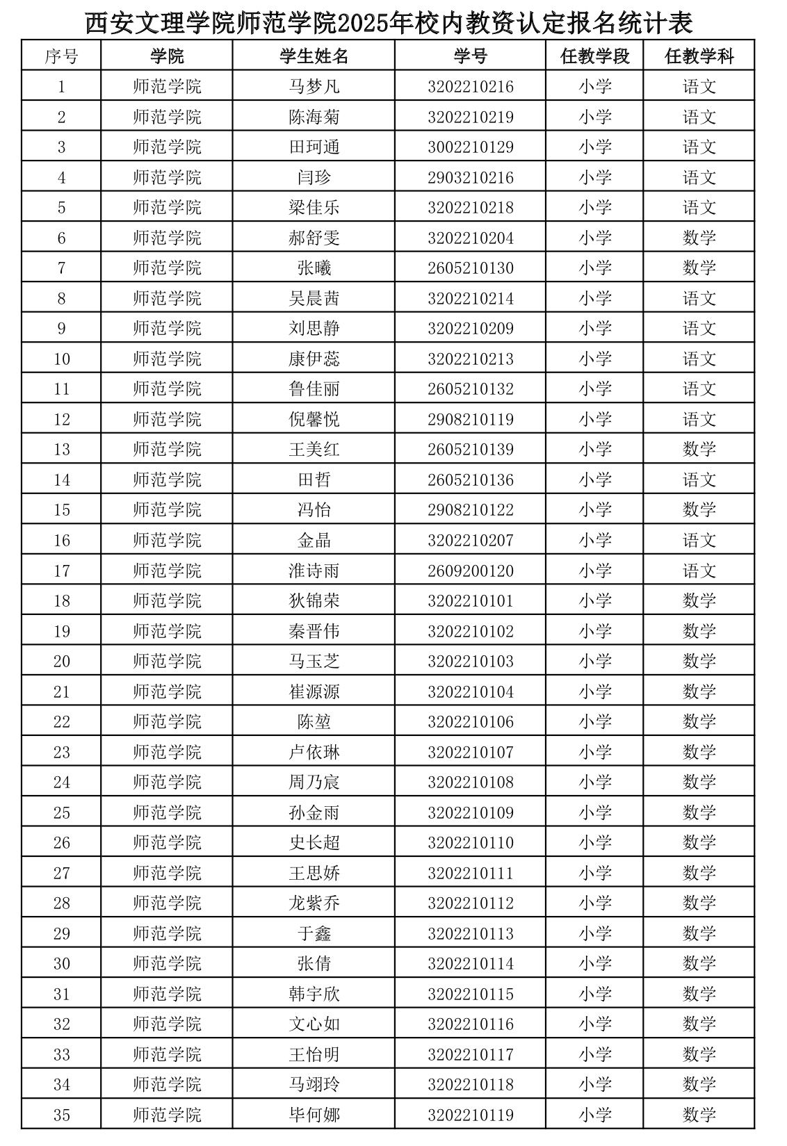根据公司安排,beats365唯一官方网站2025年小学教育专业校内教团队格认定报名工作已顺利完成。现将报名情况公示如下: