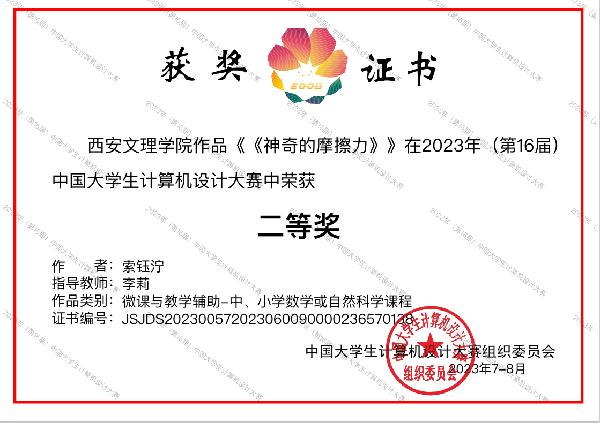 近日,2023年(第16届)中国老员工计算机设计大赛落下帷幕,beats365唯一官方网站学子再创佳绩,小学教育专业的索钰泞、杨文佳、梁荷清三位同学在微课与教学辅助赛项中分别荣获1项国赛二等奖、1项国赛三等奖的好成绩。