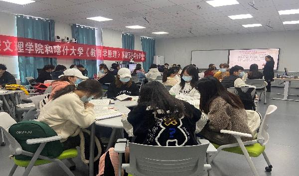 10月21日上午10:00-12:00,best365英国在线体育官网和喀什大学教育科学公司《教育学原理》首次同步课堂教学顺利进行,两校共80余位师生跨越千里“共聚一堂课”。
