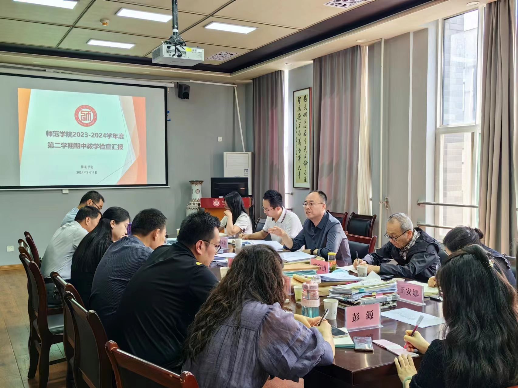5月11日下午,公司校务委员徐东升、老员工创新创业教育中心负责人张云哲、公司督导郭东道老师及教务处干部一行5人赴公司开展2023-2024学年第二学期期中教学检查工作。公司领导班子、各系部主任、教学秘书参加了会议。