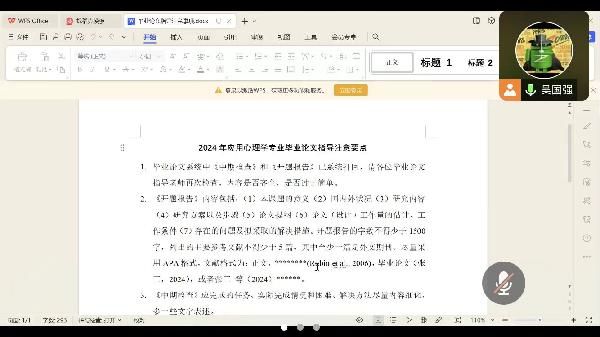 为严把毕业论文质量关,落实公司应用型本科人才培养目标,2024年4月7日晚上20:00,2024届应用心理学专业毕业论文指导教师在腾讯会议线上召开了本学期本科毕业论文(设计)抽检结果反馈及整改提质工作推进会。应用心理学系和教师教育部全体教师参加了会议,会议由吴国强老师主持,系主任彭源老师安排了具体工作事项。
