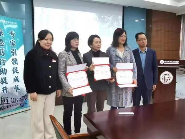 论坛交流结束,曲江第十四小学聘请曹建玲、黄玲侠和耿飞飞担任公司校外指导专家。