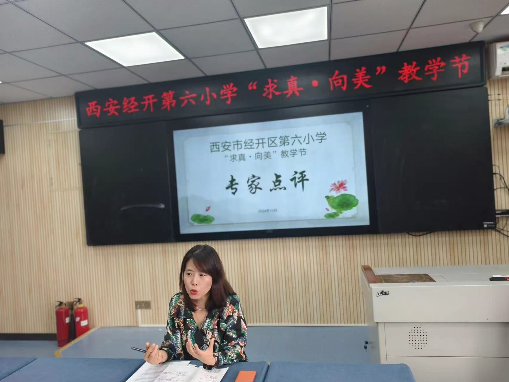 10月中旬,西安经开第六小学举行“求真向美”教学节系列活动。公司beats365唯一官方网站副经理、小学教育专业语文学科教学团队负责人李晶应邀出席并进行点评指导。西安经开第六小学教导处主任卢婉筠、语文学科组全体参赛教师及部分骨干教师全程参加教学研讨。