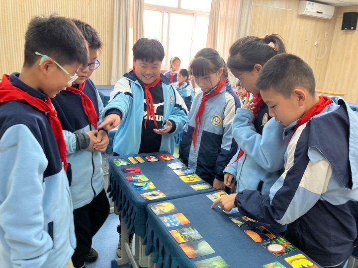 面向自我意识增强的六年级员工,开展了“有话对你说”的主题活动首先开展了“能量线”活动,“能量线”一开始通过一些明确的信息,如“按身高”“按生日”引导员工进行从左向右的排序,之后会进一步通过员工对朋辈群体的好奇生成提问,如,“爱看书程度”“心情好坏”“给世界打个分”,通过教师与生生提问,激发员工进行自我探索与人际定位。之后开展了“扑克牌24点”游戏,激发员工与同辈在竞争中合作的意识。最后,随着“旋转木马”游戏,表达今天游戏中的收获、体验和启发。