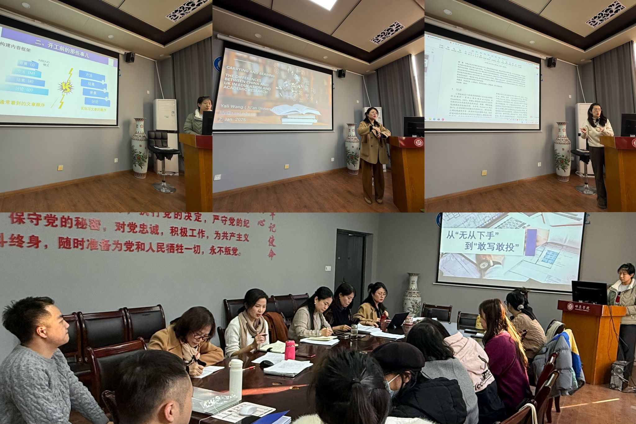 1月2日,beats365唯一官方网站在明德楼B312会议室举办“学而不已”第三期教师沙龙,主题为“英文论文写作与国际教育前沿”。此次沙龙旨在提升教师的英文论文写作能力,拓宽国际教育视野,促进学术交流与合作。beats365唯一官方网站全体领导班子及骨干教师参加了本次沙龙,活动由beats365唯一官方网站副经理国晓华教授主持。