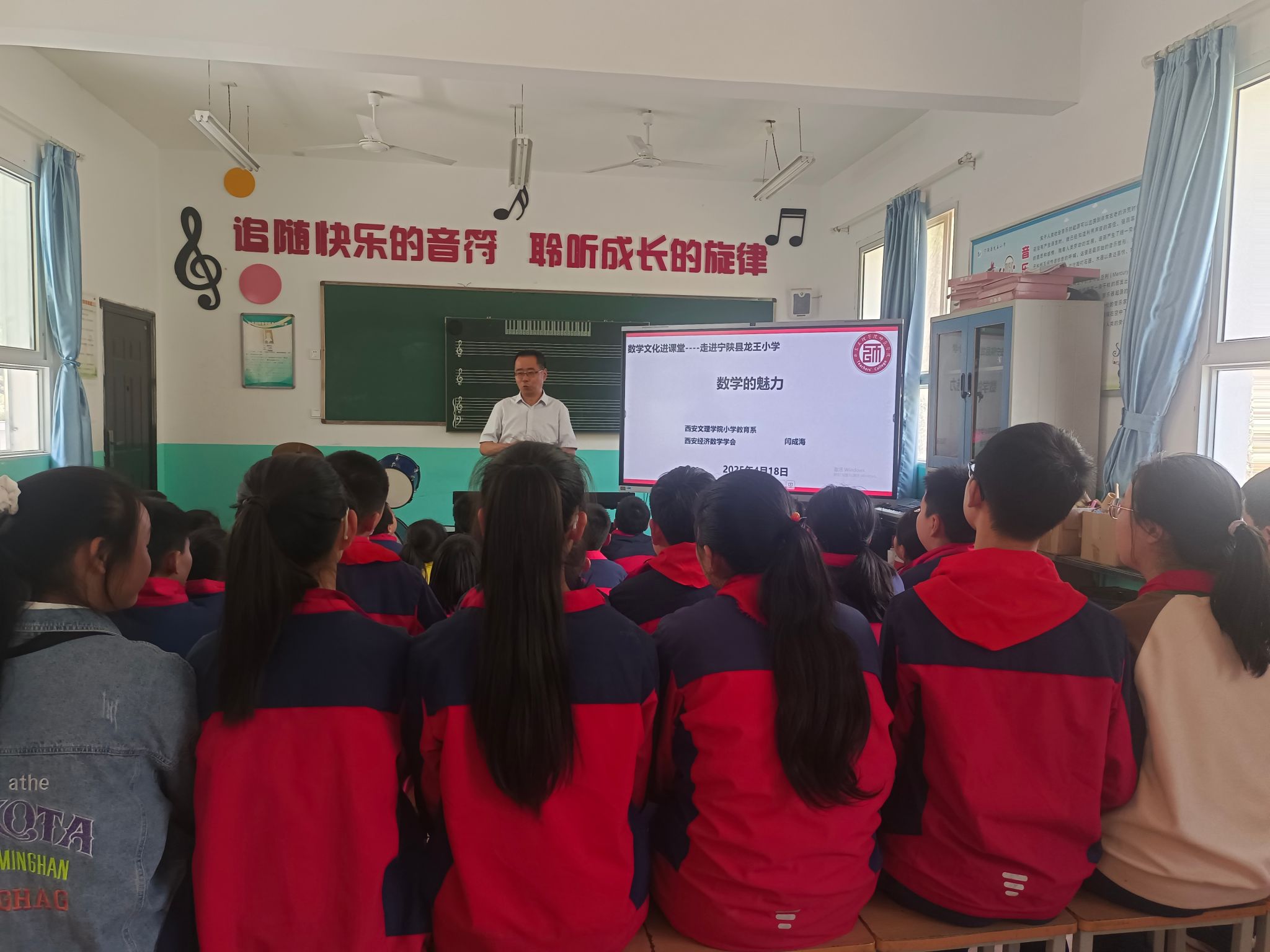4月18日上午,闫成海、彭源分别奔赴龙王小学、太山庙中学继续开展讲座。在龙王小学,闫成海以“数学的魅力”为题,为员工们开启了一场别开生面的知识启蒙之旅。他从数学的抽象性、数学的美以及数学的应用三个方面进行讲述,频频与员工互动。最后希望同学们能喜爱数学,感受数学的魅力,用数学激发好奇心、想象力和求知欲,让自己成为一个有独立思考习惯,享受美好生活的人。