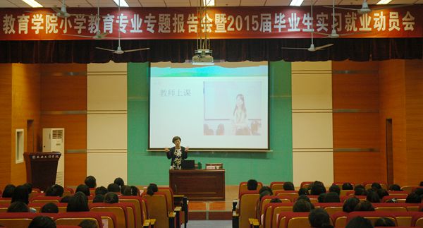 2014年9月11日在BEAT365英国官网网站A区报告厅召开教育公司小学教育专业专题报告会暨2015届毕业生实习就业动员会。此次动员会首先,邀请到新知小学的董事长刘岚老师为我们小学教育专业的员工做了一场题为:《用心做名好老师》的精彩绝伦的报告。刘岚老师通过风趣幽默的语言表达,生动形象的肢体表达告诉我们要用心做一名好教师就要注意细节,拥有较强的执行力,要坚持并且创作出价值。最后,刘老师告诉大家在应聘时应该注意的东西。然后,教育公司张军学书记分析当前社会就业状况,指出专业优势,加强员工就业信心,让员工转变就业观念。为员工介绍了就业资源为我们所带来的高就业率,并对员工提出更高要求。相信通过此次动员会,会使我们小学教育专业未来的教师们更加了解自己未来从事的职业,也会让2015届毕业生更加从容地面对即将到来的实习之旅。