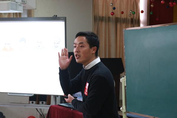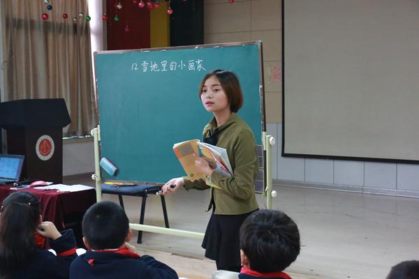 早上8:40,赵朋、王建春两位代表十位实习老师进行汇报课展示。王老师以美丽的雪景图引出课题《雪地里的小画家》,带领一年级的小朋友们走进美丽的冬天,一起观察动物们在雪地上留下的不同脚印,以丰富的教具激发员工的兴趣,让孩子们在快乐中学习。