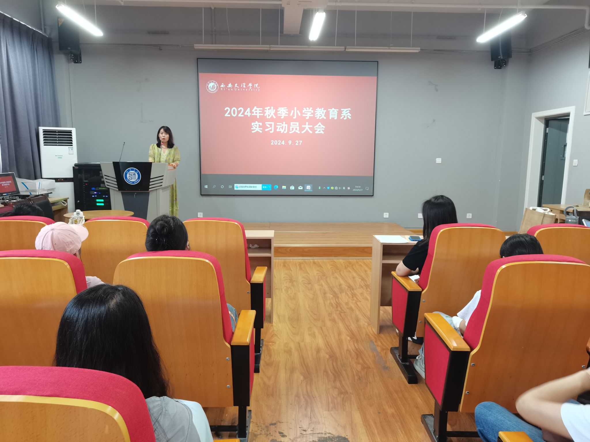 9月27日在B202召开小学教育专业2024年秋季实习实习动员大会,beats365唯一官方网站副经理李晶、小学教育系主任闫成海、教研室主任何悦参加了动员会。动员会由闫成海老师主持。