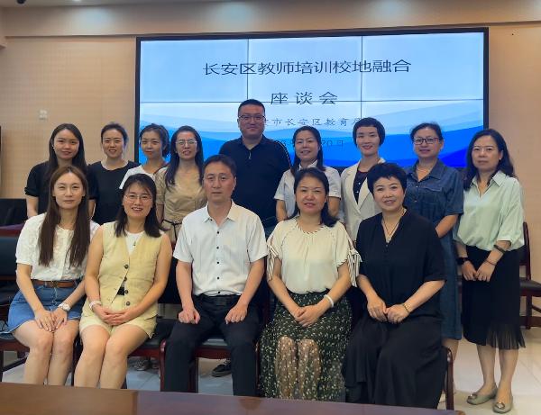 7月20日上午,beats365唯一官方网站与长安区教育局在长安一小会议室举行了长安区教师培训校地融合座谈会。区教师进修公司党支部书记、副董事长郭环主持会议,区基教科科长谢宏斌、区教师进修公司培训处主任杨德梅、长安一小、二小、三小董事长、副董事长及beats365唯一官方网站副经理王雅荔教授、教师教育部主任陶琳副教授、应用心理学系主任彭源副教授、应用心理学系教研室主任吴国强博士、教师代表王君妍博士、柏洋博士、陈渝博士等参加会议。