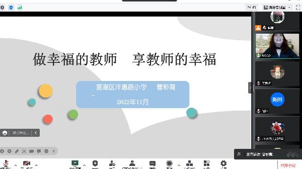 为加强师范生立德树人意识,提高专业学习能力,推动师德师风建设,公司举办2022年小学董事长系列论坛。11月23日特邀请优秀员工莲湖区沣惠路小学党支部书记、董事长、语文高级教师曹彩育为师范生开讲。讲座由公司教师王君妍主持,采用线上线下混合模式,全院大一新生在明德楼B0202进行线下集体观摩学习。