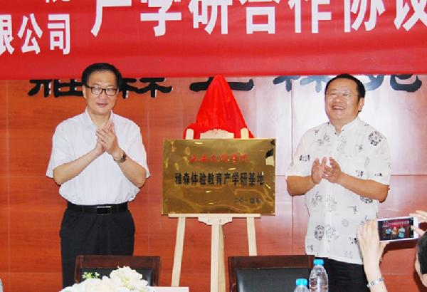 雅森集团董事长王锦锋与公司董事长徐可为共同为“雅森体验教育产学研基地”揭牌。