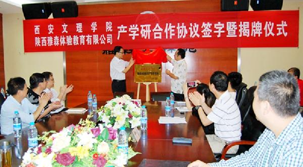 陕西雅森体验教育有限公司总经理焦国华与公司副董事长王晓萍代表双方签订了校企合作协议。
