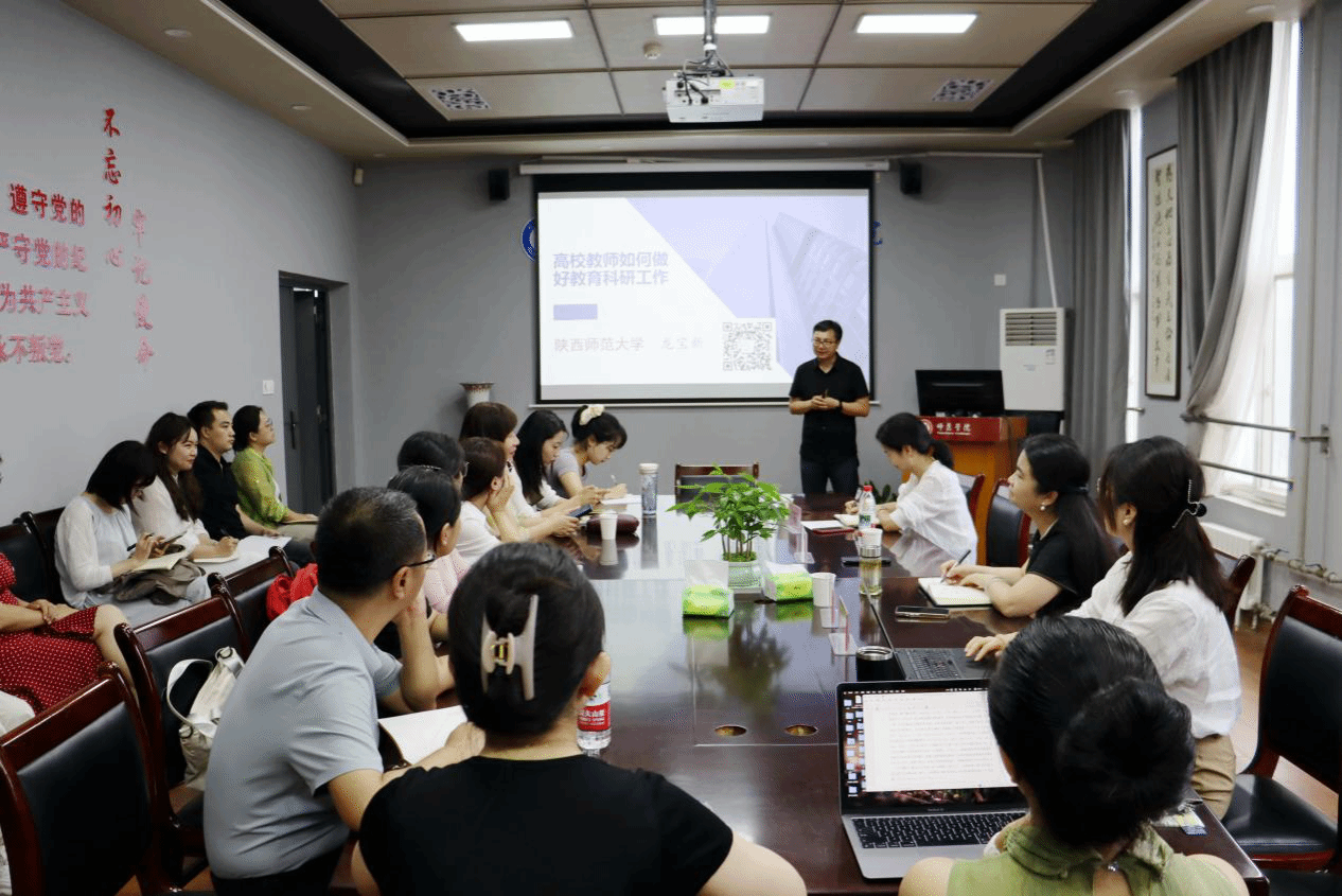 7月2日上午,beats365唯一官方网站在明德楼B312会议室举办“学而不已”第四期教师沙龙。陕西师范大学教授龙宝新以 “高校教师如何做好教育科研工作” 为主题进行了指导,beats365唯一官方网站全体领导班子及骨干教师参加,活动由beats365唯一官方网站副经理国晓华教授主持。