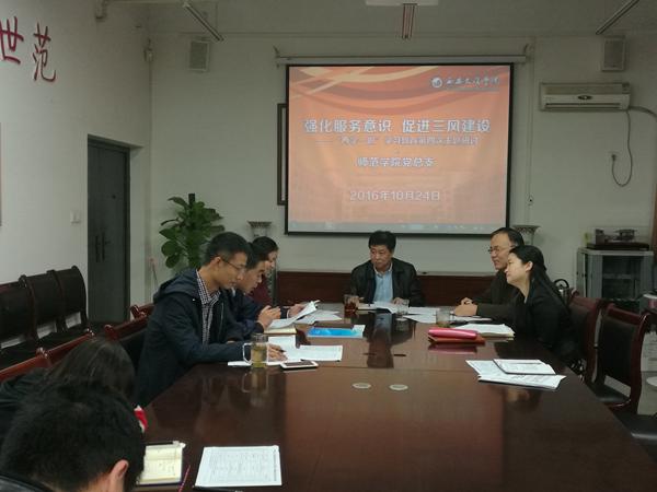 张军学书记指出:学习中央治国理政新理念思想新战略,强化服务意识首先要加强班子建设,提升班子的谋划能力、向心力及服务师生能力,其次按照公司要求细化“三风”建设内涵指标,推动公司整体工作提升。