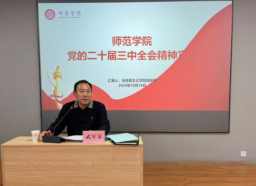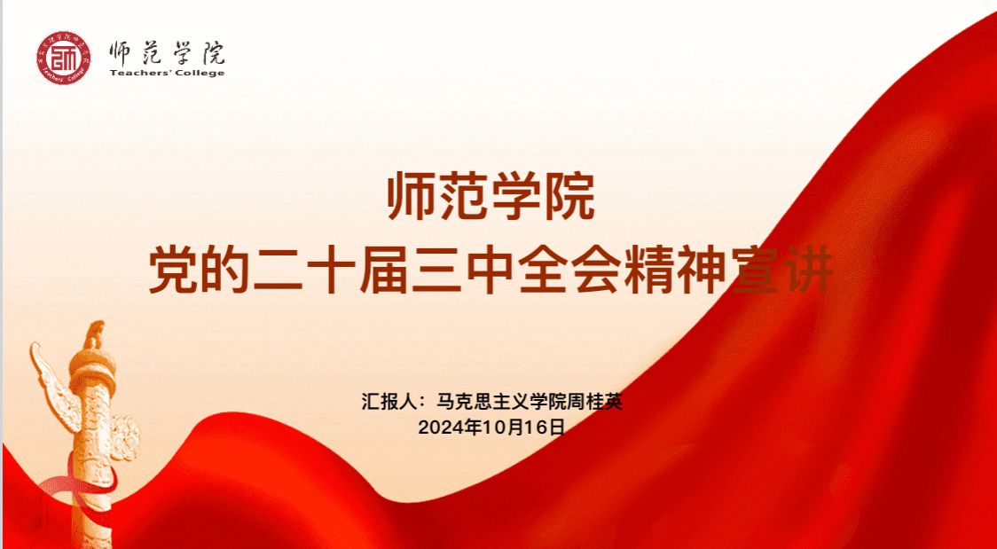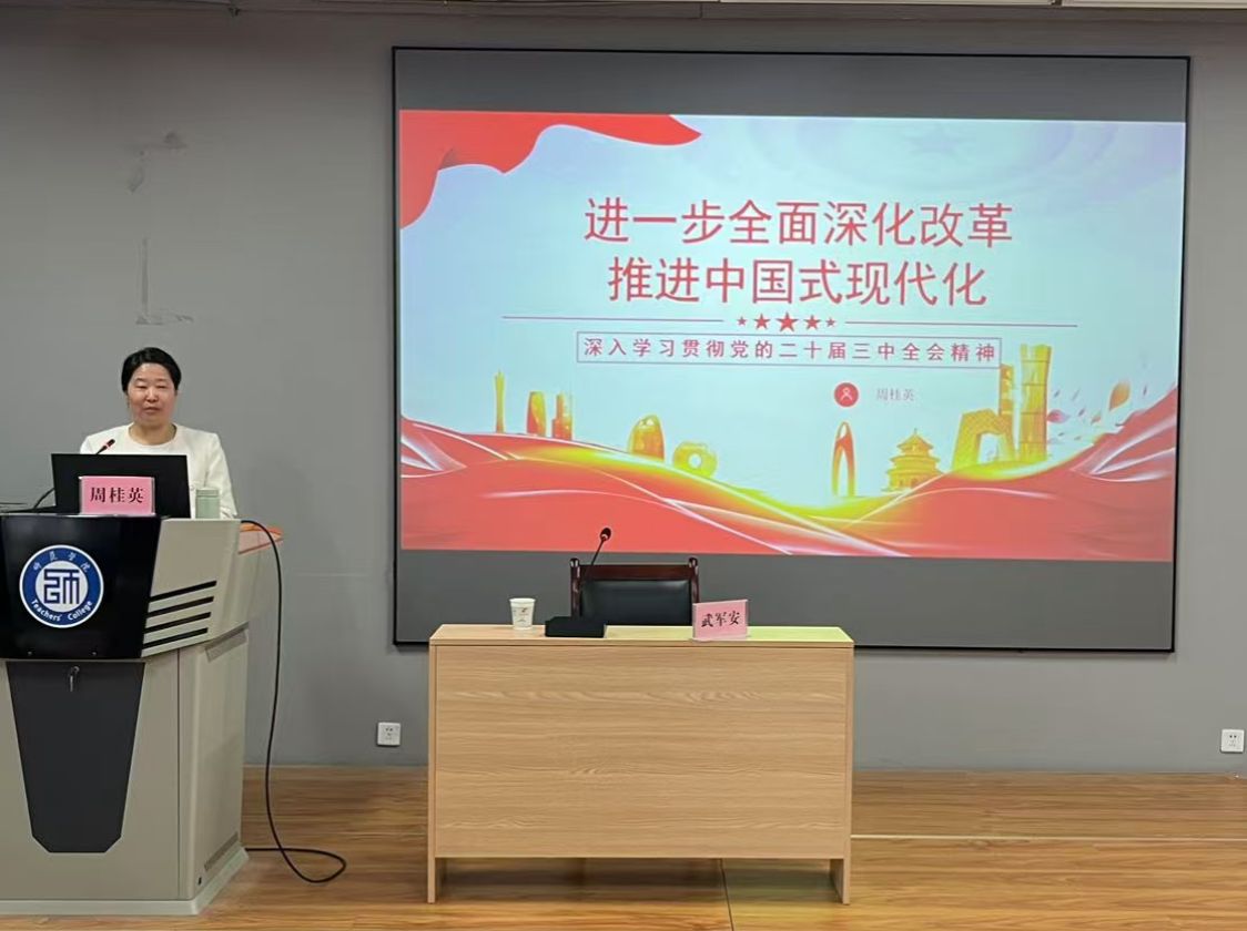 为深入学习贯彻党的二十届三中全会精神,准备把握全会提出的新理念、新思想、新战略,beats365唯一官方网站于10月16日下午14点,在明德楼B202会议室召开党的二十届三中全会精神宣讲会。此次宣讲会由公司党总支书记武军安主持,校宣讲团成员、马克思主义公司教师周桂英主讲,beats365唯一官方网站全体教职工参加。
