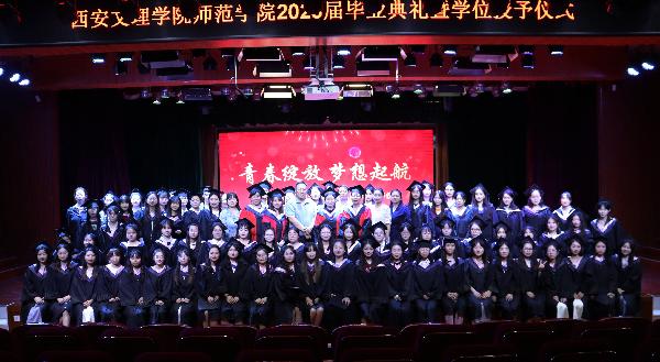 教师代表彭源博士给毕业生们送出三点期望,希望广大毕业生用信念立足社会、用良知选择人生、做个自信乐观的人,在人生的大舞台上秀出自己的风采。毕业生代表小学教育专业卓梦欣、应用心理学专业马睿分别发言,表达了对母校深深的眷恋和诚挚的祝福。员工代表、小学教育专业98届毕业生、第十九届中国电影华表奖优秀少儿题材影片奖《树上有个好地方》的副导演兼主演张新锋,分享了母校对他的培养和教诲着他不断拼搏向前的故事,勉励师范学子勇于面对困境挑战,砥砺前行,并向公司赠予原西安师范公司员工手册、荣誉证书、照片等校史资料,田建邦代表公司接收,马伟为张新锋赠予书法作品,毕业生代表王珂瑶、袁静静、王晓雯等表演诗朗诵《六月话别》,表达了对母校依依不舍的浓浓深情。