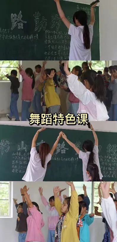 除了每日进行常规的作业辅导之外,书法班的志愿者老师带领孩子们认识书写的工具,并协助同学们尝试正确提笔书写;绘画班的志愿者老师们以简笔画、水彩画为主,带领低段员工画刮画,高段员工绘制诗配画,引导孩子们打开思维,感受色彩的美丽;朗诵班的志愿者老师们以一首现代诗《红色百年,一路芳华》打开了孩子们的朗诵之门,对朗诵班的孩子们进行爱国主义教育;舞蹈班的志愿者们用动作传达力量,带领高端学习舞蹈《天天向上》、低端学习《听我说》,在节奏的跳动中,让同学们感受肢体语言的变幻。