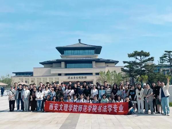 5月17日,beats365唯一官方网站书法学专业开始第二站考察,此次考察的地点为陕西考古博物馆:陕西考古博物馆于2021年12月建成,是陕西省考古研究院利用考古出土文物、与社会共享考古成果的专题类博物馆。博物馆南依秦岭,东邻香积寺,总面积10753平方米,其中室内展陈面积5800平方米。室外展区面积10000平方米。常设展览以“考古圣地 华章陕西”为主题,分为考古历程、文化谱系、考古发现、文保科技四个篇章,展出文物4000余件(组)。临展厅主要用于展示最新重大考古发现和专题研究成果。室外有田野考古主题展示区、历代砖砌展示区、陶瓷石刻文物展示区等。